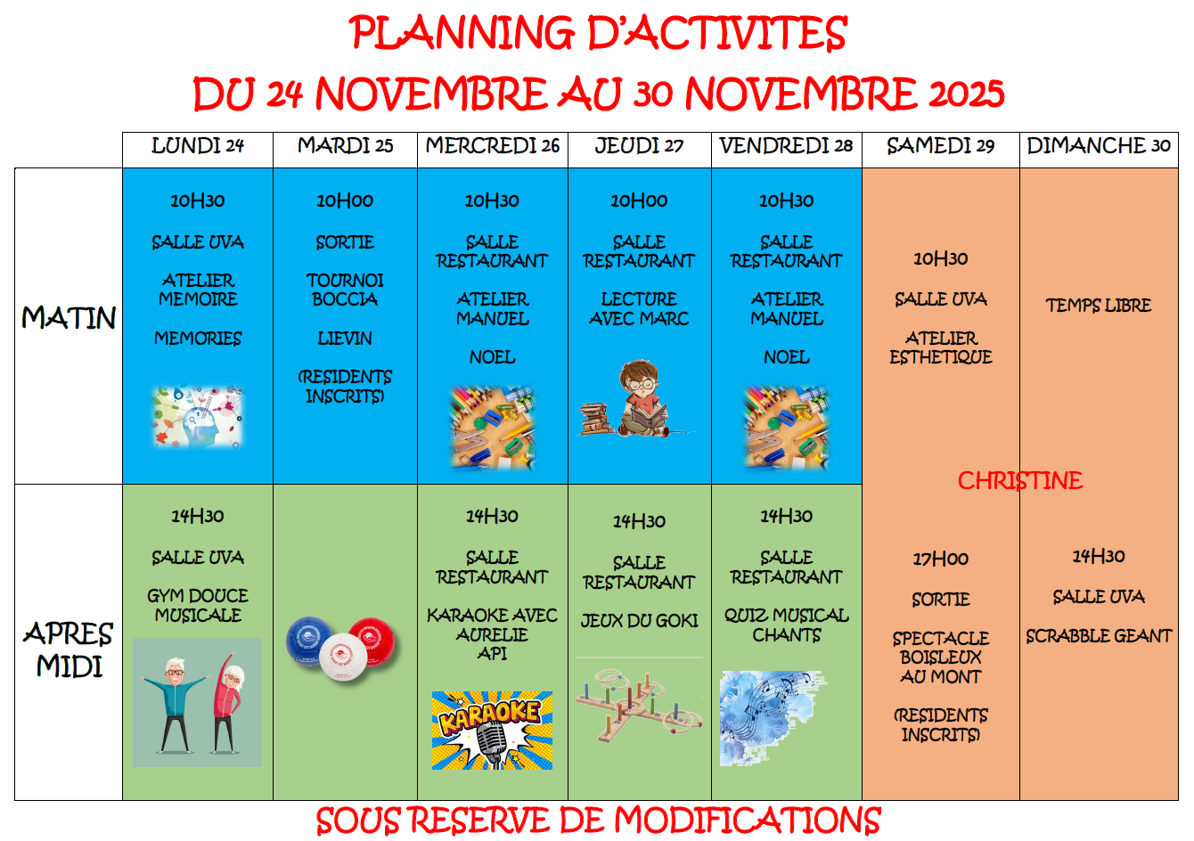 • Animations du 24 au 30 novembre 2025