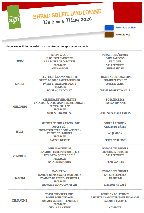 MENUS DU 23 FEVRIER AU 1ER MARS 2026