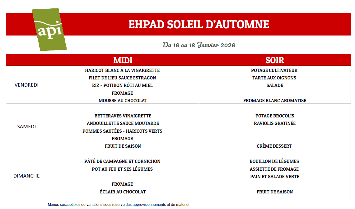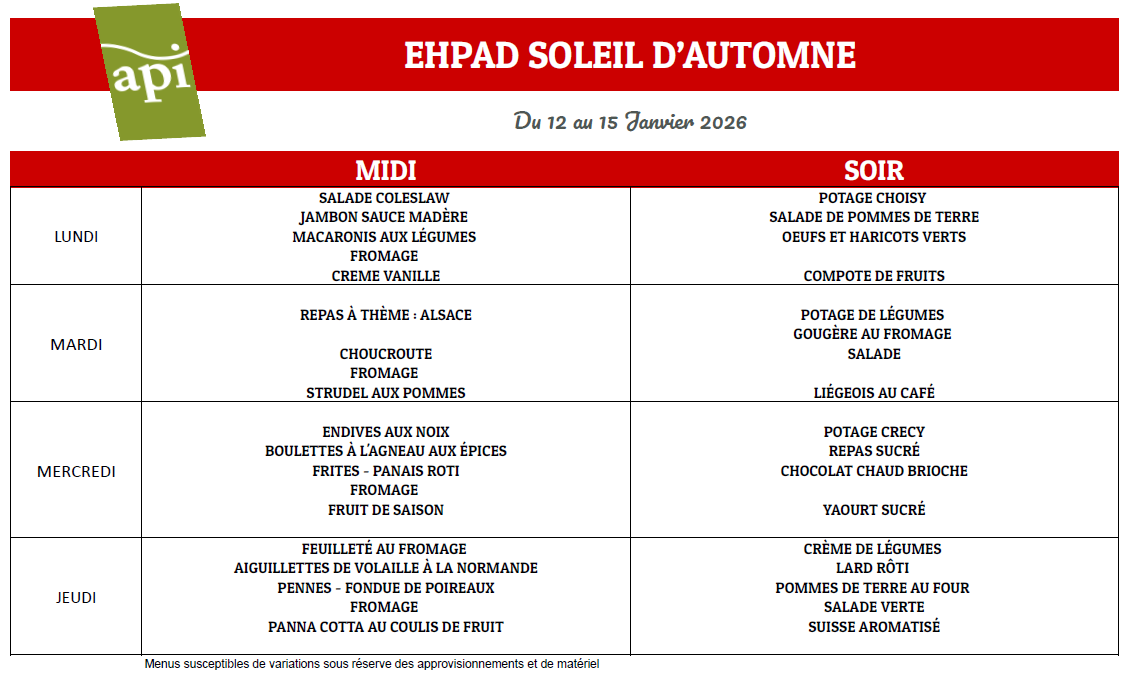 Menus semaine 4